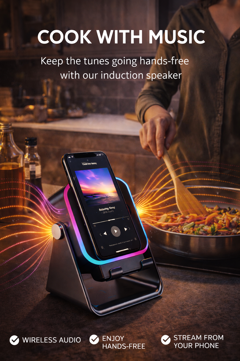 AMPL activates the moment you place your phone down—no Bluetooth, no setup, no friction. Just fuller, clearer sound that fills the room effortlessly.